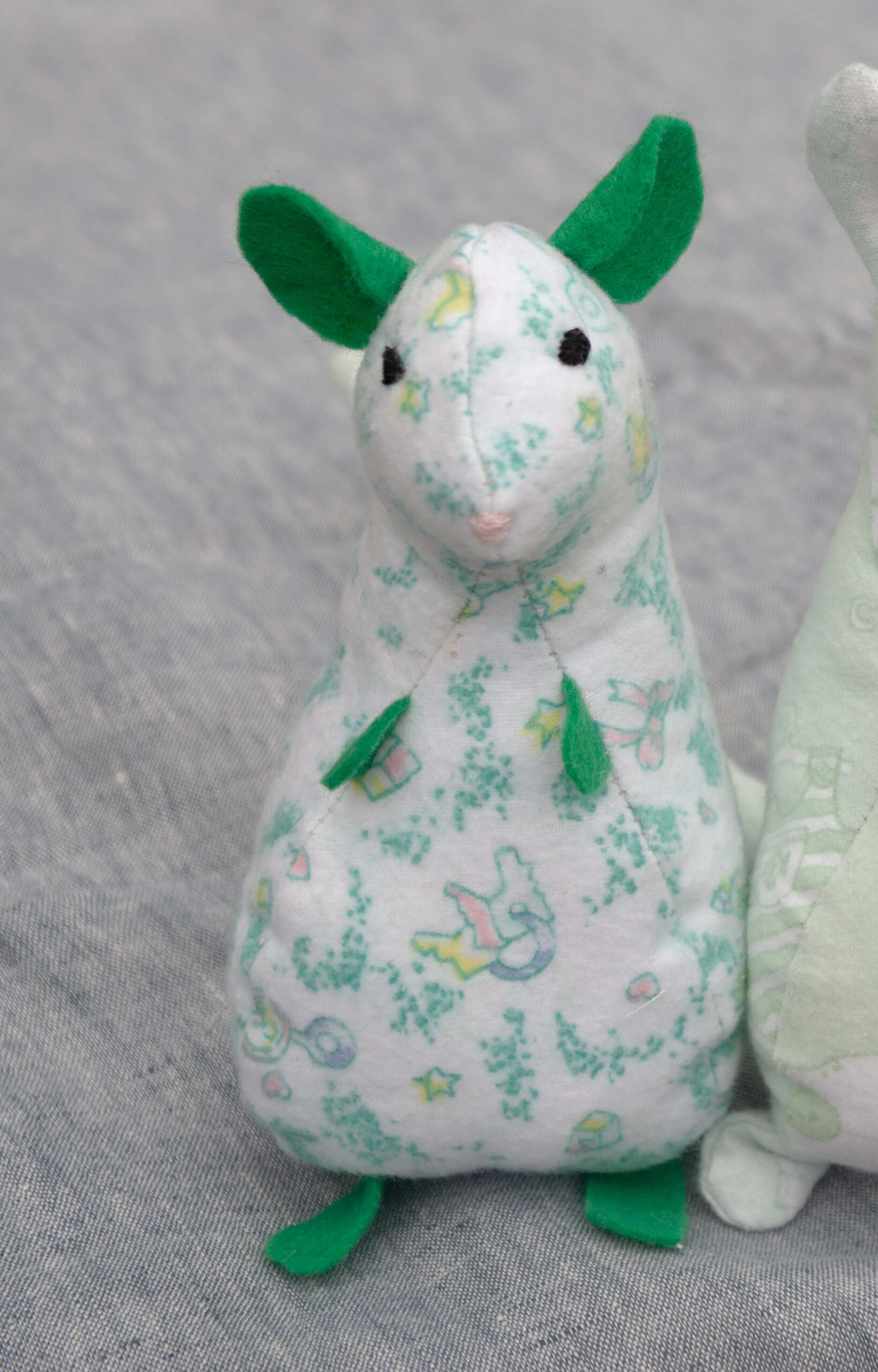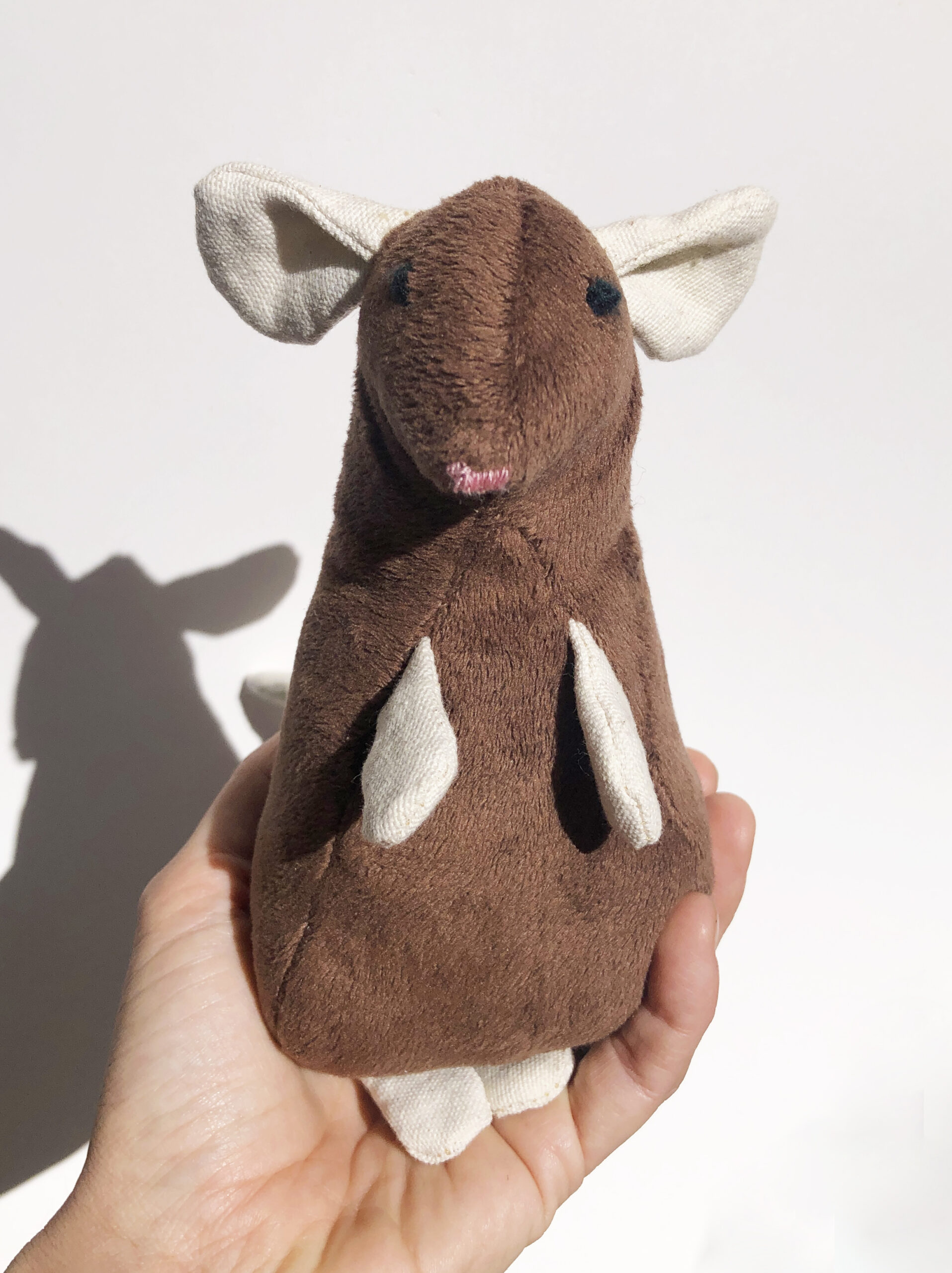 I created this rat plush pattern to capture the way pet rats stand. This pattern works well with non stretch fabrics like cotton, canvas and linen. It looks really nice with flannel, but I’ve also had success with not too stretchy minky material. Others have had success using felt.